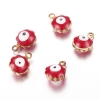 Подвески Кулоны Клубника Латунь и Красная Эмаль, Стойкое Покрытие Позолотой 18К, 11.5х7.5х7мм, Соединительное кольцо 4х0.6,