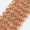 Основа для стразовой ленты имитирует золото или другие драгоценные металлы, что дает возможность создавать уникальные по красоте украшения. Благодаря современным технологиям, ленты за долгое время использования не теряют свой первоначальный вид. Металл и стразы не тускнеют, оставаясь яркими, искрящимися.