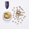 Пользуется популярностью у мастеров пластиковые конфетти – это очень простой в использовании декор для маникюра разнообразных форм, цветов и размеров: всевозможные геометрические фигуры, звездочки, цветочки и т.д. Продаются в упаковках по 2 г или в баночках диаметром 4 см.