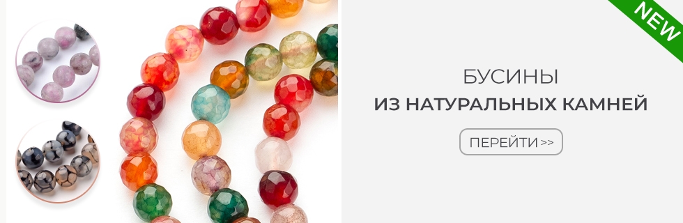 • бусины: разного размера, вида (пандора, шамбала и др.) и материала (акриловые, деревянные, из смолы, металлические, фарфоровые, глиняные, из натуральных камней)
