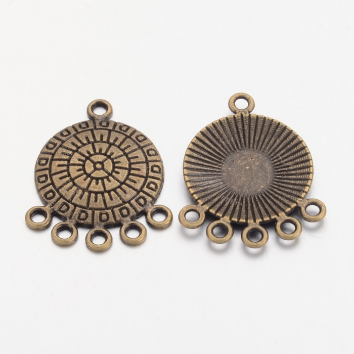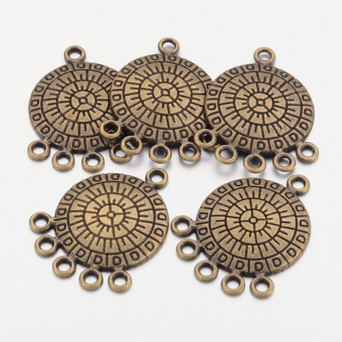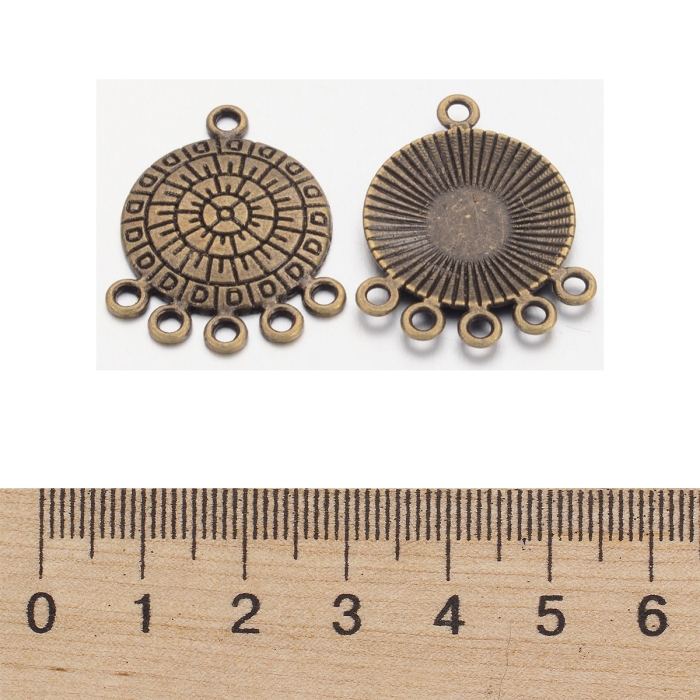 Коннектор Бижутерный Сплав Круглый, 6 отверстий, Бронза, 26х21х2мм, Отверстие 2мм, (УТ100031444)