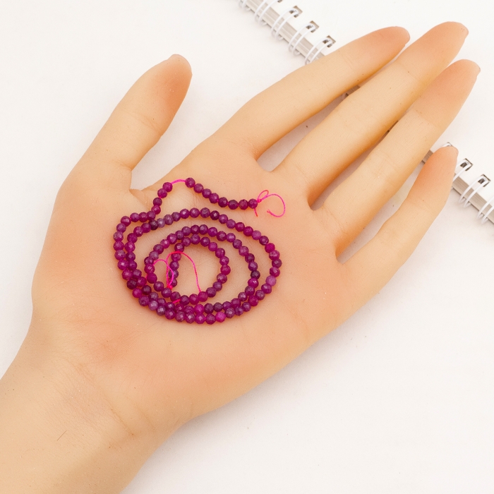 Бусины Натуральный Красный Корунд/Рубин Круглые Граненые, 3.5мм, Отверстие 0.6мм, около 106шт/37см/нить, (УТ100031586)