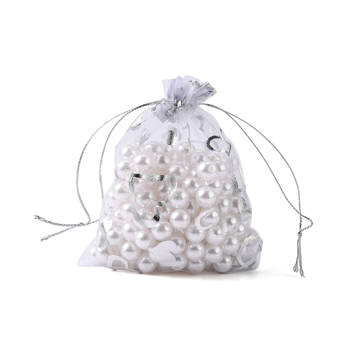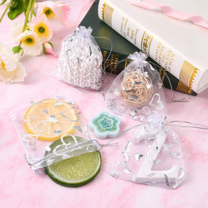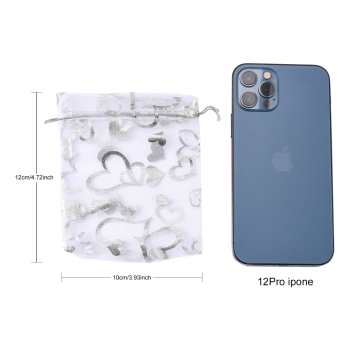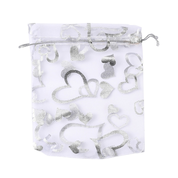 Подарочные Мешочки из Органзы с Кулиской Прозрачные с Рисунком Сердце