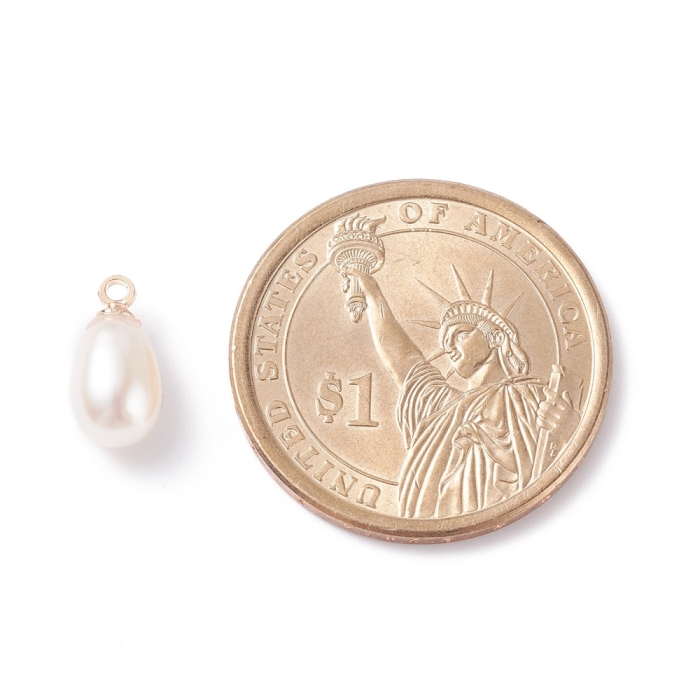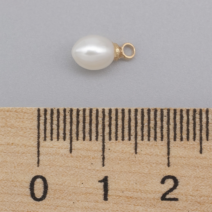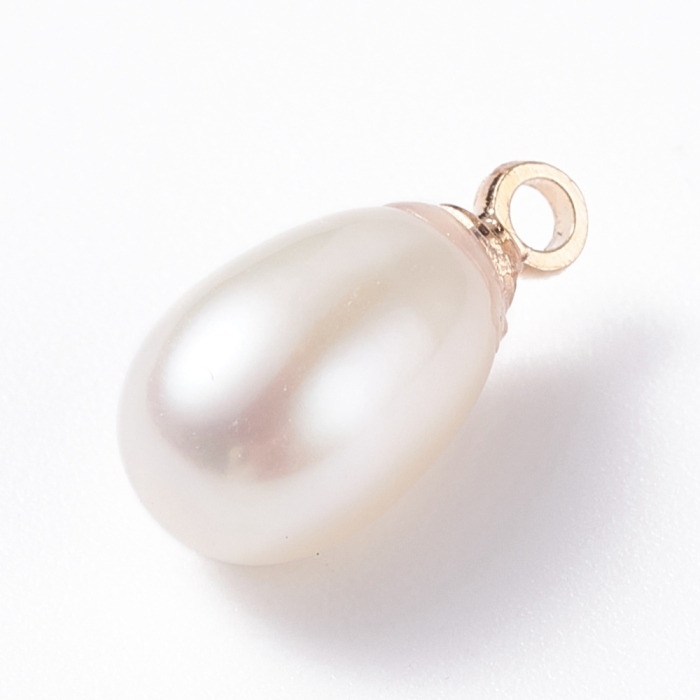 Кулон Подвеска Натуральный Речной Жемчуг Капля, Фурнитура Латунь, Светлое Золото, 11-12.5x5-7мм, Отверстие 1.5мм, (УТ100031951)