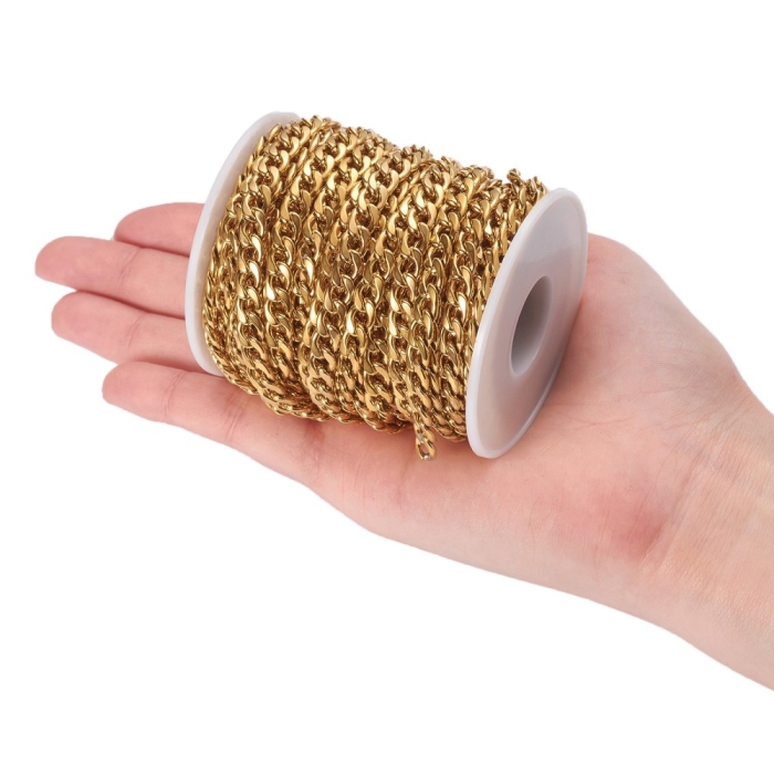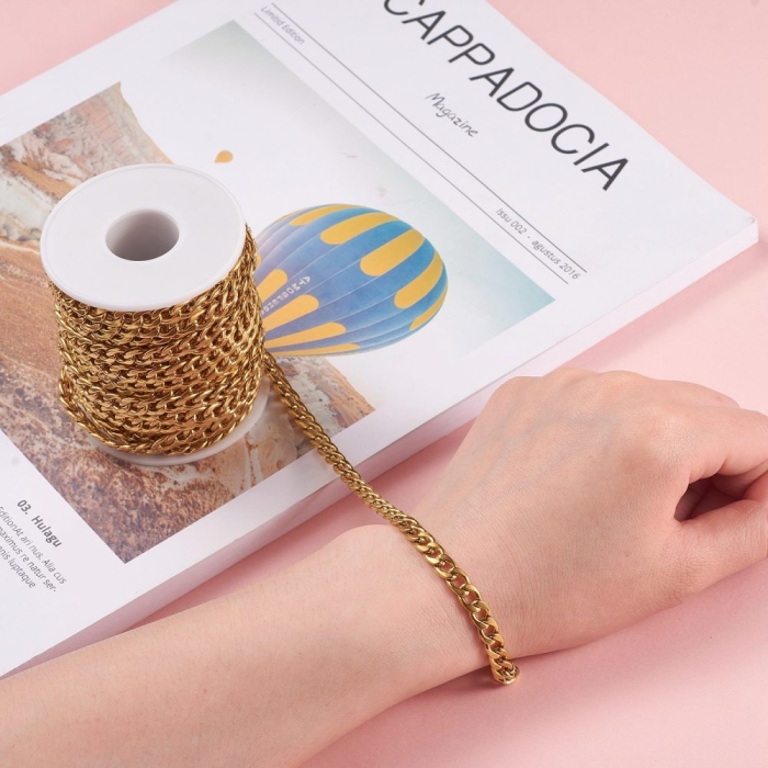 Цепь Нержавеющая Сталь Разъемная, Ионное Покрытие Позолотой 18К, Ширина 6мм, Звено 9х6х2мм, (УТ100032285)Цвет:
