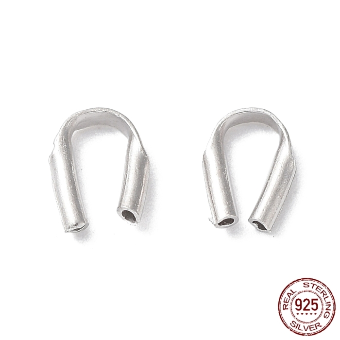 Протекторы для проволоки из серебра 925 пробы с родиевым покрытием защищают ювелирный тросик, леску или проволоку от истирания в местах крепления застежек и соединительных элементов. U-образная форма предотвращает перегиб, а родиевое покрытие придает прочность, блеск и устойчивость к потемнению.