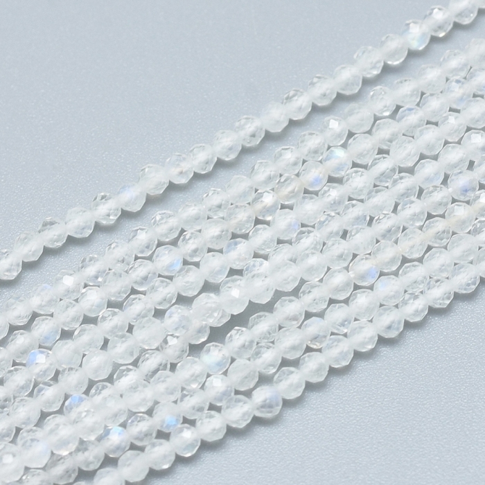 Бусины Натуральный Радужный Лунный Камень, Класс ААА, Круглые Граненые, 3мм, Отверстие 0.6мм, 145шт/37см/нить, (УТ100032530)