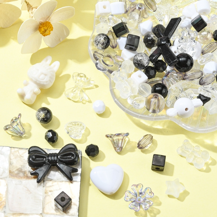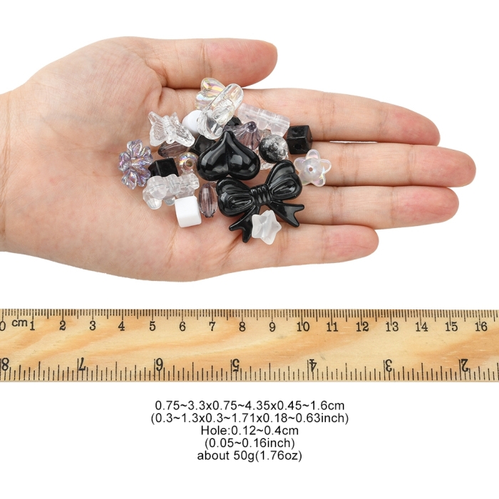 Набор декоративных акриловых бусин насыщенного черного цвета — это отличный выбор для всех, кто увлекается творчеством и созданием украшений. В упаковке представлены бусины для рукоделия разных форм: как прозрачные, так и непрозрачные. Размеры варьируются от 7.5 до 43.5 мм, диаметр отверстий — от 1.2 до 4 мм, что делает их универсальными для работы с различными материалами.