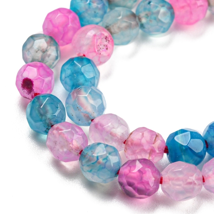 Граненые круглые бусины из натурального агата, которые были окрашены и термически обработаны для достижения насыщенного, ярко-розового цвета (Hot Pink). Благодаря огранке поверхность каждой бусины эффектно сверкает, что придает изделиям выразительности и энергии. Агат сохраняет естественную текстуру и плотность камня.