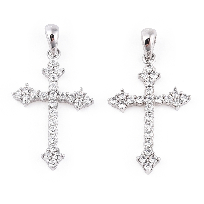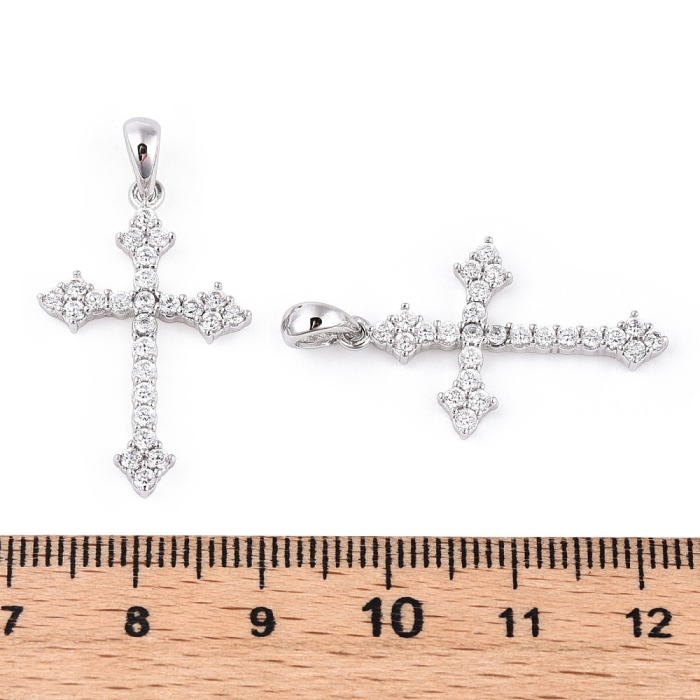 Серебро 925 Пробы Подвеска Кулон Крест с Фианитами, Родиевое Покрытие, Фурнитура для Украшений Цвет: Платина Цвет Фианитов: Бесцветный