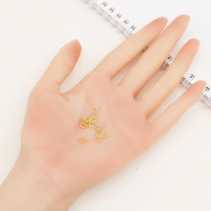 Высококачественные застежки Spring Ring изготовлены из серебра 925 пробы и покрыты настоящим 18-каратным золотом. Они имеют четкую гравировку «925», что подтверждает подлинность серебра. Благодаря тщательной обработке и блеску золота, застежки выглядят изысканно и надежно.