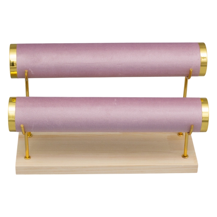 Браслетница Бархатная с Деревянной Основой, Т-образная Планка Цвет: Бледно-Фиолетовый Цвет металла: Золото