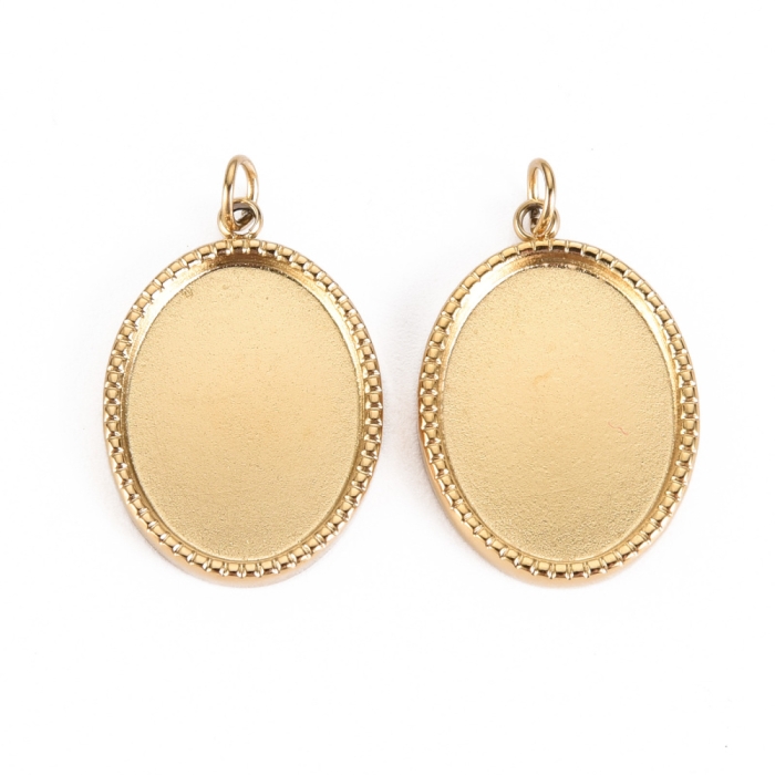 Кулон-Сеттинг под Кабошон из Нержавеющей Стали, Овальный, Позолота 14К толщиной 0.01~0.03мкм (золото 585 проба),