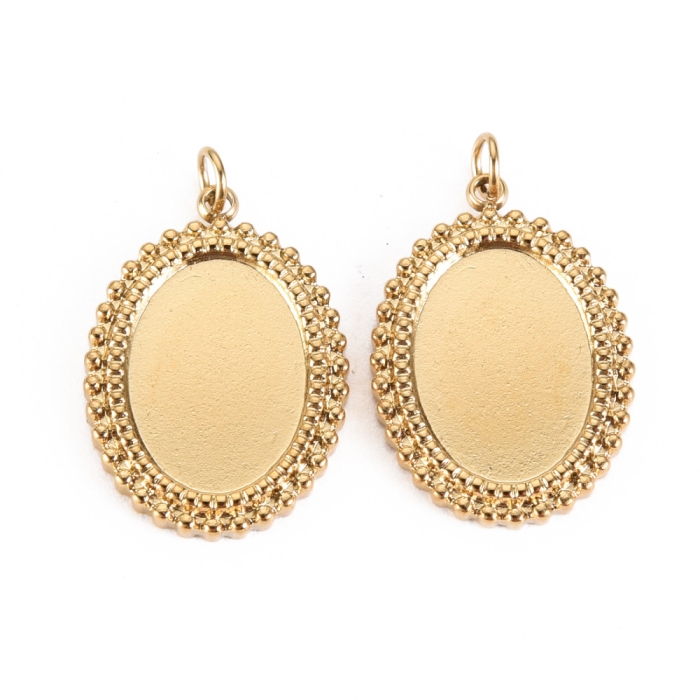 Кулон овальный основа под кабошон , нержавеющая сталь 304, могут иметь двустороннее кольцо для легкого крепления к ланцюгу или шнуру. Покрытие чистым 14-каратным золотом без печати, элегантный блеск и стойкость к изготовлению. Предназначены для вставки кабошонов в ответное сообщение.
