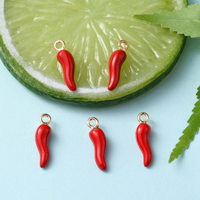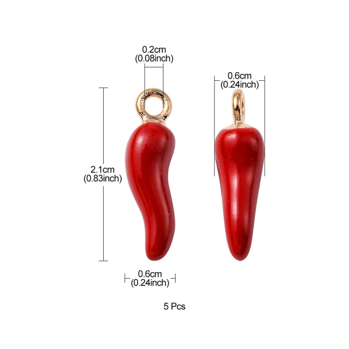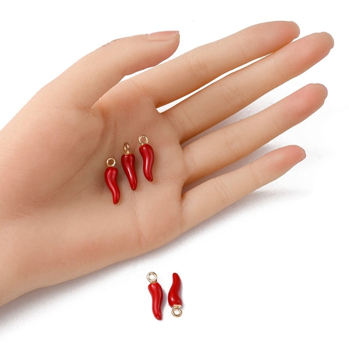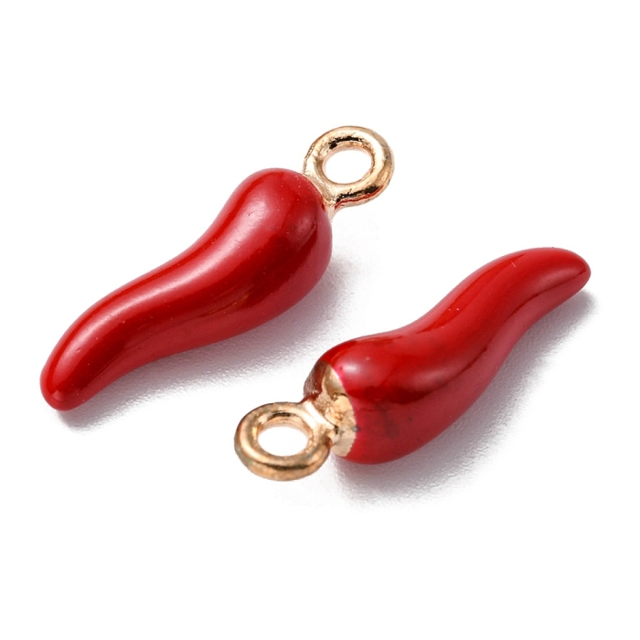 Подвеска в форме итальянского рога Cornicello — популярный декоративный элемент, широко используемый в итальянской культуре. Изделие выполнено из металлического сплава с эмалированным покрытием красного цвета. Форма подвески визуально напоминает красный перец чили, что является характерной особенностью данного символа.