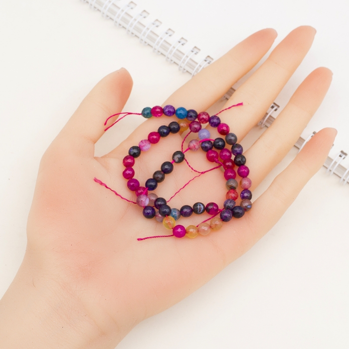 Бусины Натуральный Агат Круглые, Граненые, Микс, 6мм, Отверстие 1мм, около 58шт/34см/нить, (УТ100033116)