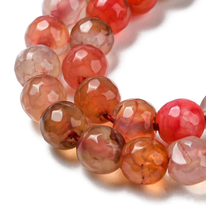 Бусины из Натурального Агата Круглые, Граненые, Термоокрашенные, на нитях