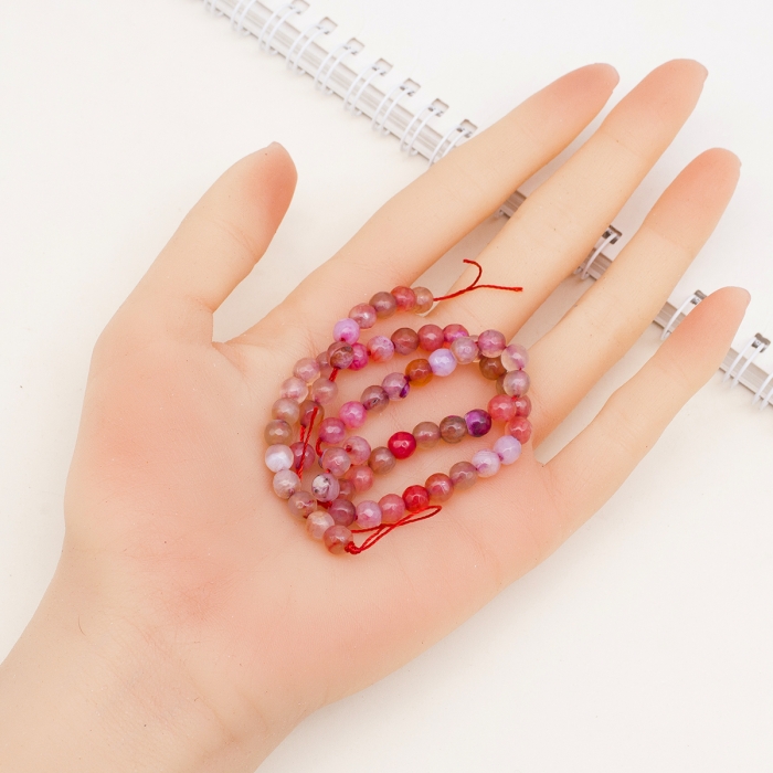 Натуральные агатовые бусины яркого оттенка маджента прошли окраску и термическую обработку, что подчеркивает их естественную текстуру и насыщает цвет. Граненная огранка придает камню блеск и делает украшения более выразительными и стильными.