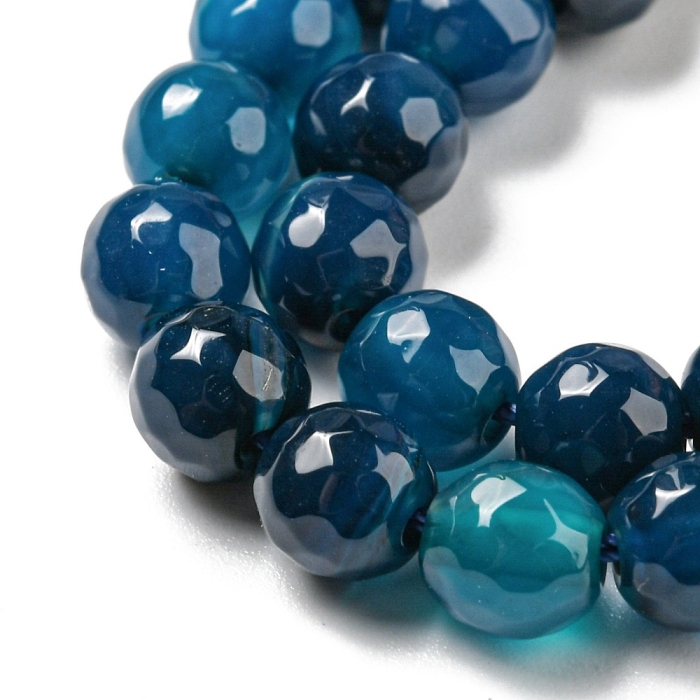 Бусины из Натурального Агата Круглые, Граненые, Термоокрашенные, на нитях