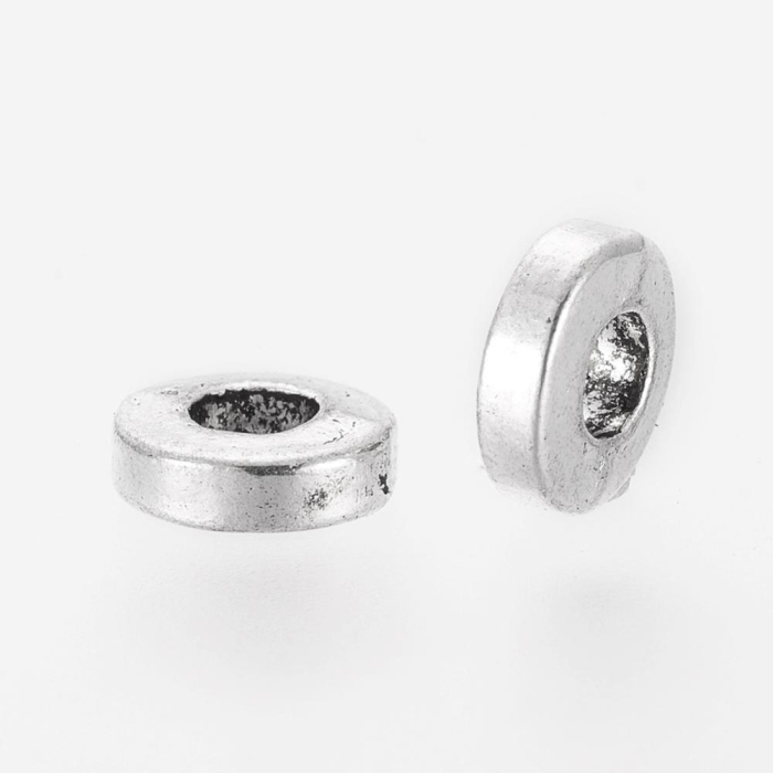 Бусины-Разделители, Бижутерный Сплав, Форма Пончик, Античное Серебро, 6х2мм, Отверстие 2.5мм, (УТ0027704)