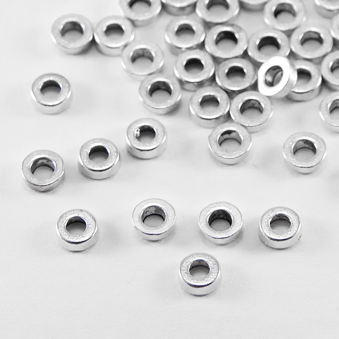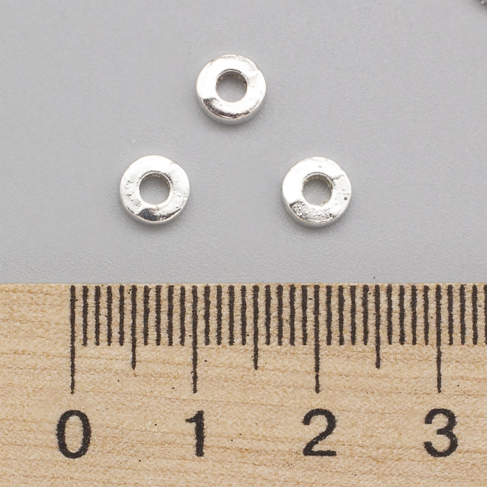 Бусины-Разделители Бижутерный Сплав, Форма Пончик, Серебро, 6х2мм, Отверстие 2.5мм, (УТ0027702)Упаковка: