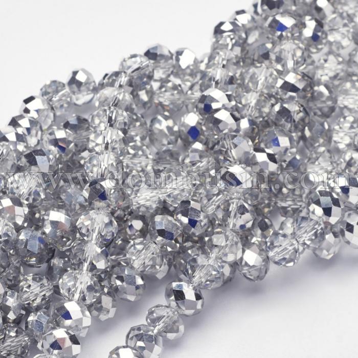Бусины Австрийский Хрусталь, Имитация, Стекло Граненые, Прозрачные, Рондель, Бесцветный, 8х6мм, Отв-тие: 1мм, около 72шт/42см/нить (УТ000003820)