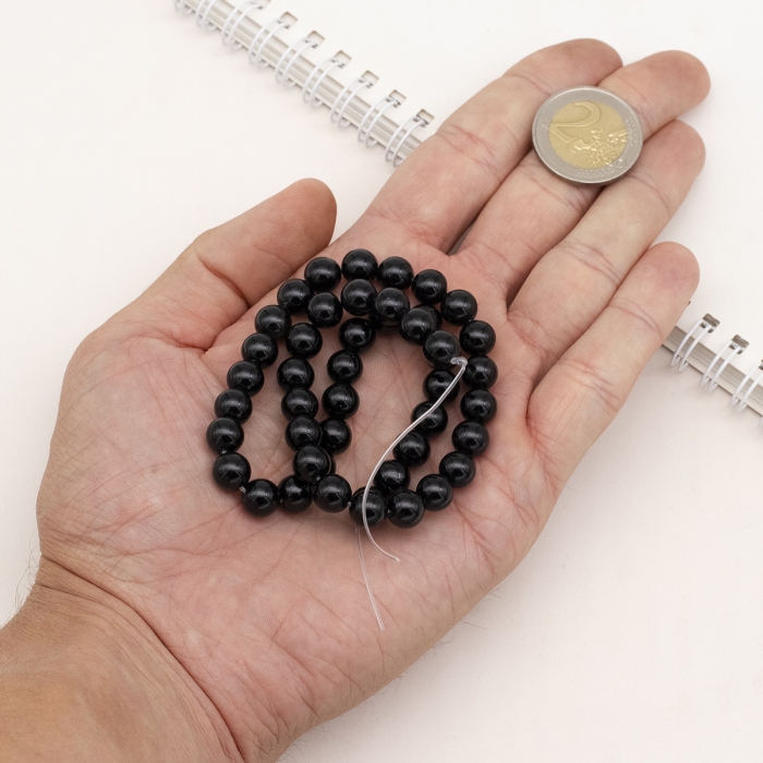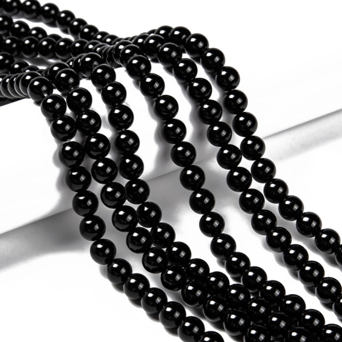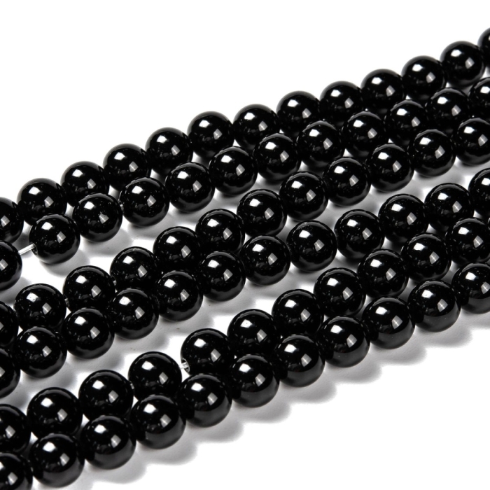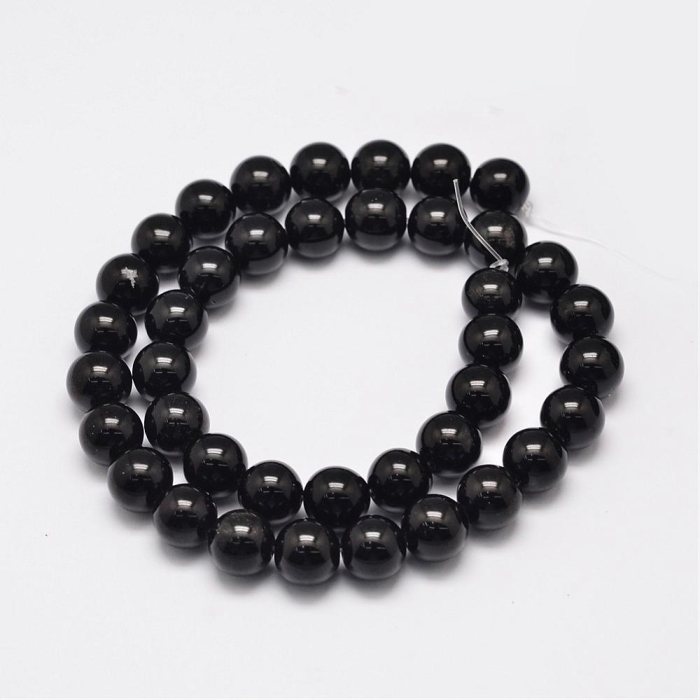Бусины Натуральный Черный Обсидиан Круглые, 8мм, Отверстие 1мм, около 45шт/36см/нить, (УТ100011718)