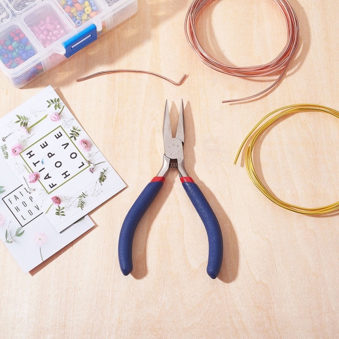 Плоскогубцы Нержавеющая Сталь, Инструмент для Бижутериии и Рукоделия, Синие, 125х53мм, (УТ100011389)