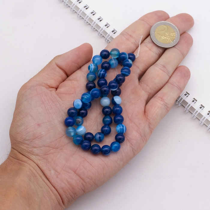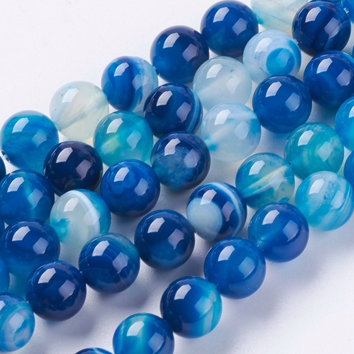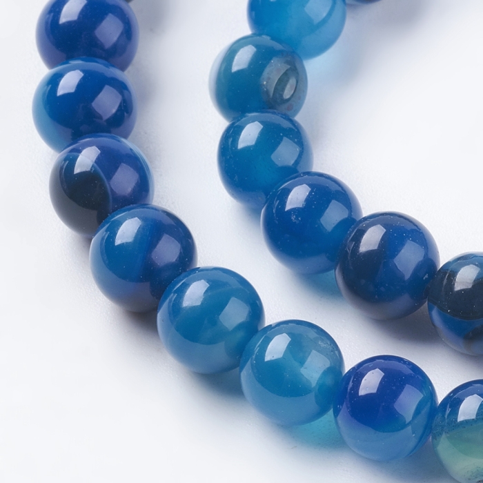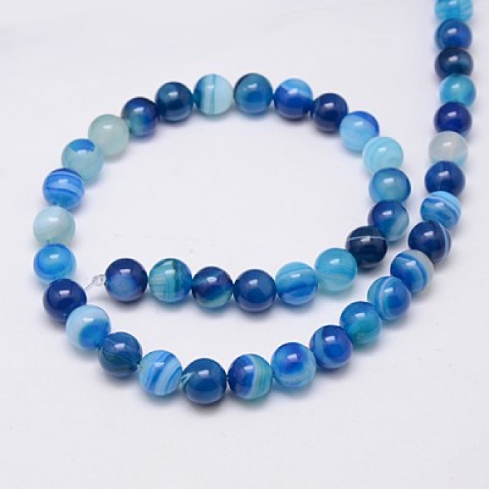 Бусины Натуральный Полосатый Агат Круглые, Синие, 8мм, Отверстие 1мм, около 45шт/37см/нить, (УТ100011871)