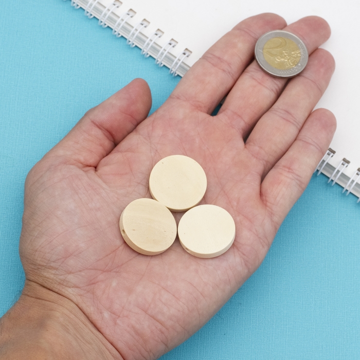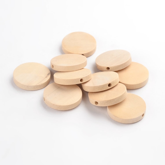 Бусины Деревянные, Натуральные, Круглые Плоские, Бежевый, 25х5мм, Отв-тие 2мм, (УТ100012562)
