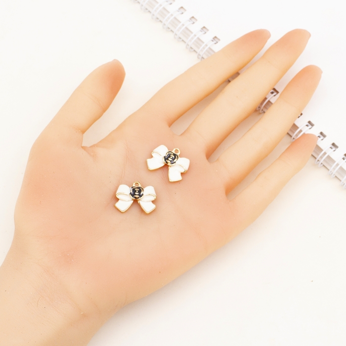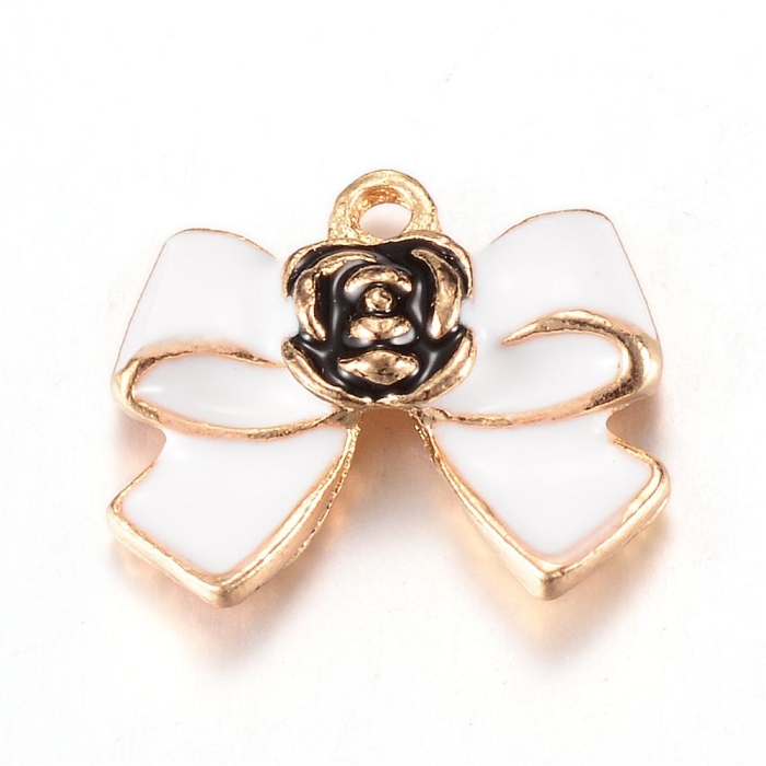 Кулон Бант, из Сплава, Эмалированный, Цвет: Белый, Размер: 17x19.5x4.5мм, Отверстие 1.5мм, (УТ100014623)