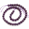 Бусины Натуральный Аметист, на нитях, Класс А, Круглые, Размер: 7~8мм, Отверстие 1мм, около 45шт/38см/нить, (УТ100013969)