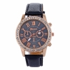 Женские кварцевые часы из сплава со стразами, цвет корпуса розовое золото. Диаметр 40мм. Ремешок из кожзама: 23х2см.