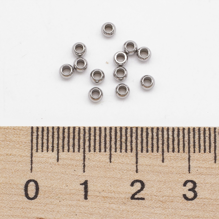 Бусины-разделители, Нержавеющая Сталь, Круглые, 3х2мм, Отверстие 1мм, (УТ100017408)
