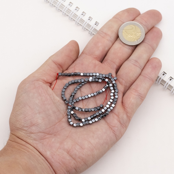 Бусины Гематит Класс А Кубик, Черные, 3х3х3мм, Отверстие 1мм, около 125шт/38см/нить, (УТ100018732)