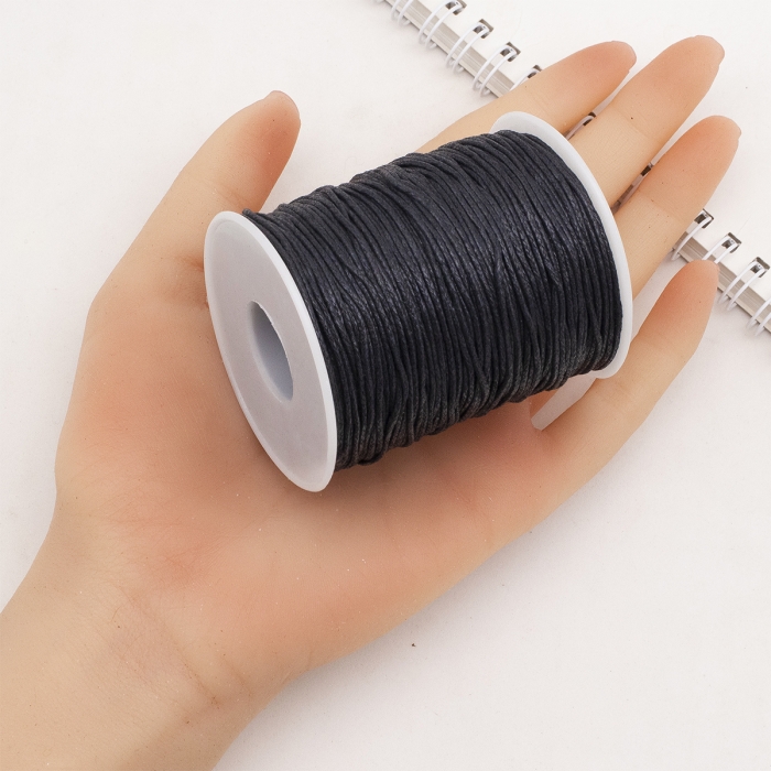 Шнур Вощеный Хлопковый 1мм/90м для Плетения Макраме и Бижутерии, Черный, 1мм, около 90м/катушка, (УТ100021032)