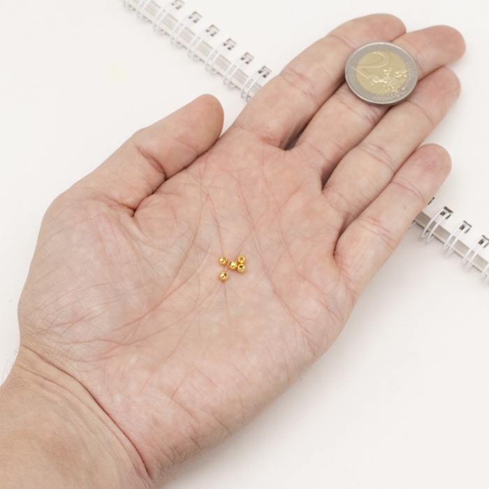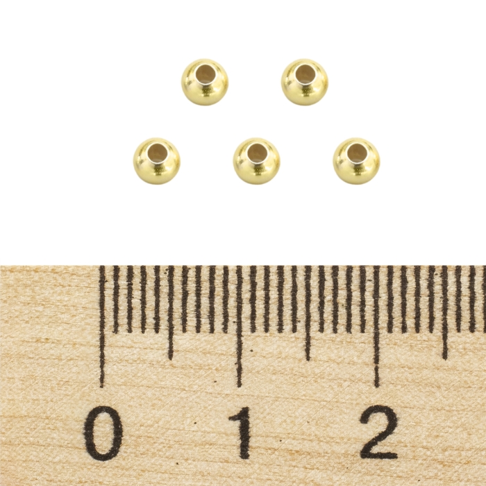 Серебро 925 Бусины Круглые, Позолота 24К, 3мм, Отверстие 1мм, (УТ100024772)