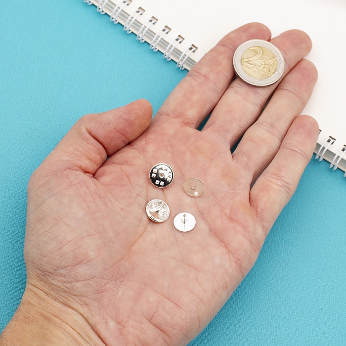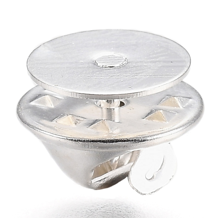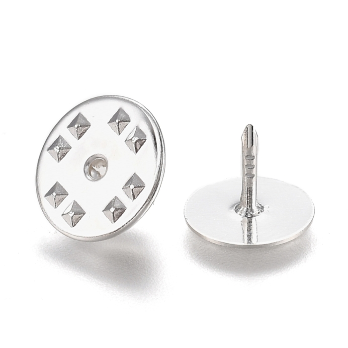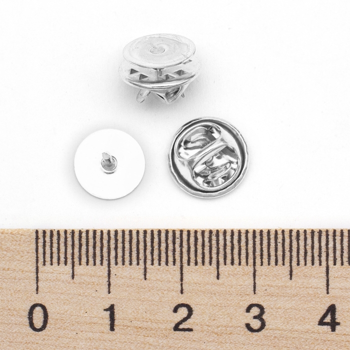 Основа для Значка или Броши, с Платформой и Застежкой Цанга-Бабочка, Латунь, Серебро, Платформа 8мм, Застежки 11.5мм, Отв. 1.2мм, Пин 1мм, (УТ100026250)Упаковка: