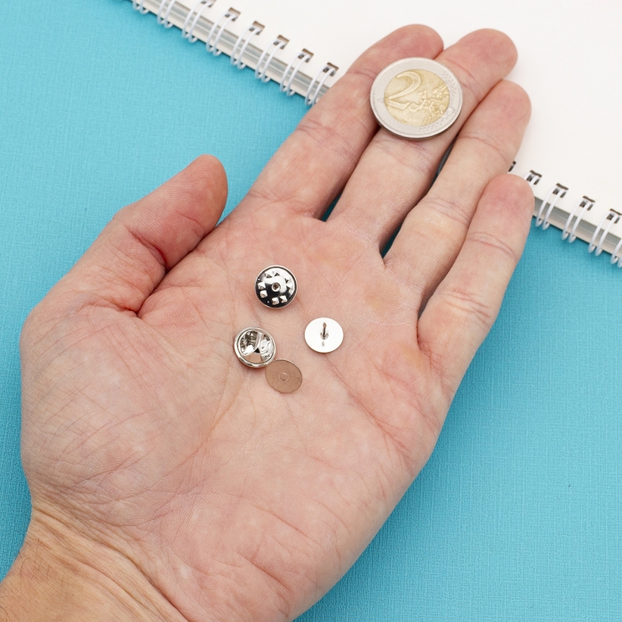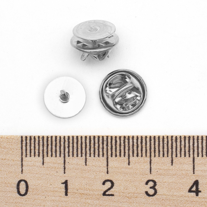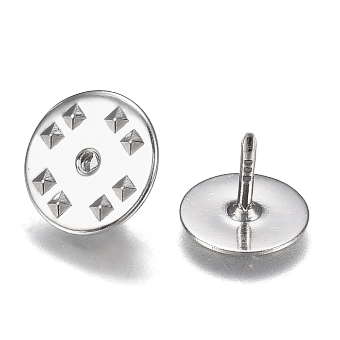 Основа для Значка, Броши с Платформой и Застежкой Цанга-Бабочка, Платина, Платформа 8мм, Застежки 11.5мм, Отверстие 1.2мм, Пин 1мм, (УТ100026252)
