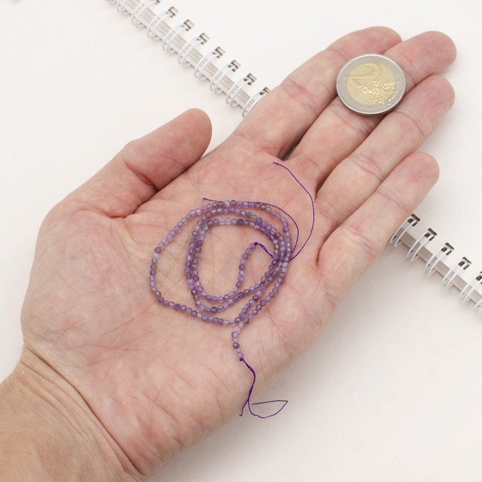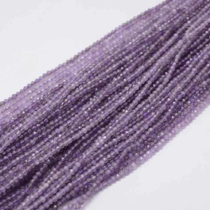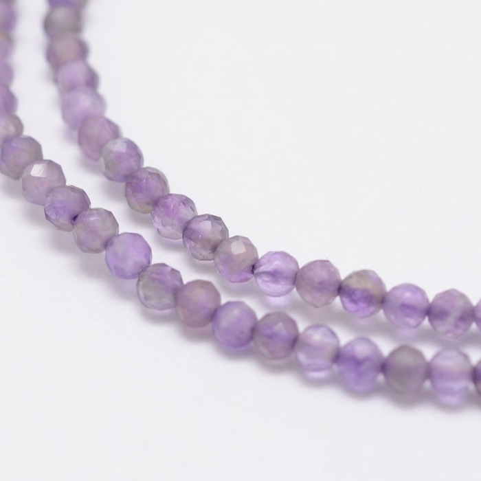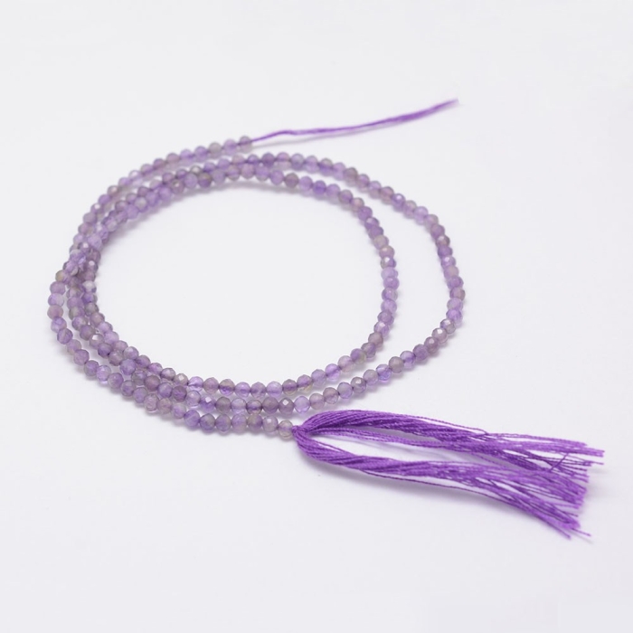Бусины Натуральный Аметист, Круглый, Граненый, 2мм, Отверстие 0.5мм, около 190шт/38см/нить, (УТ100026381)