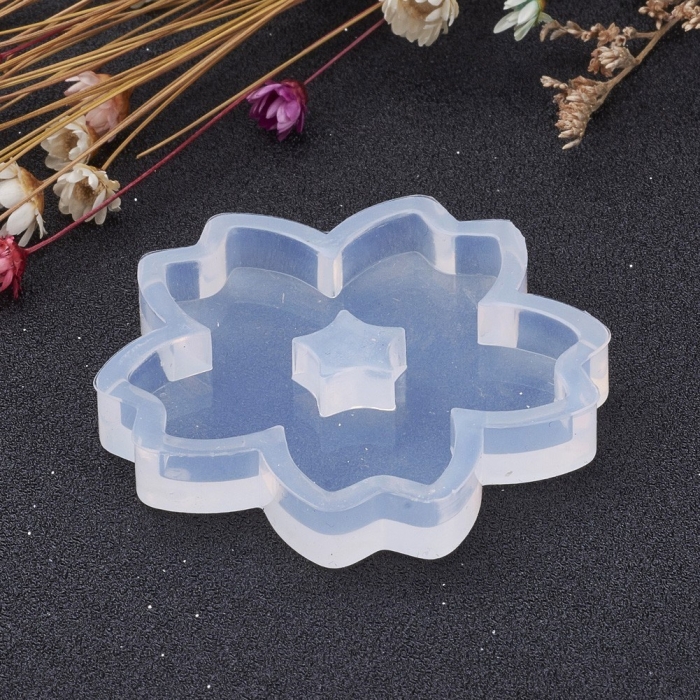 Силиконовая форма для изготовления изделий из эпоксидной смолы, из УФ смолы в форме цветка.