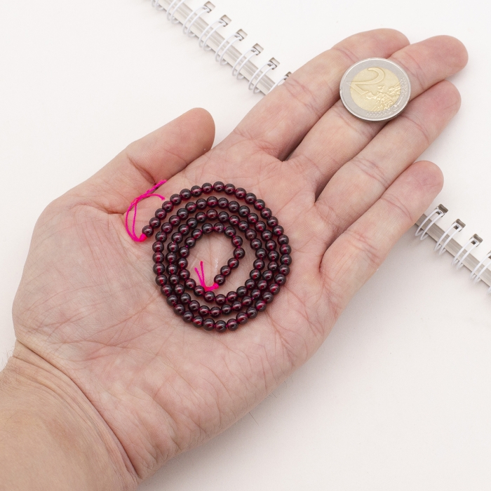 Бусины Натуральный Гранат, Класс АА, Круглые, 4мм, Отверстие: 1мм, около 90шт/38см/нить, (УТ100026733)