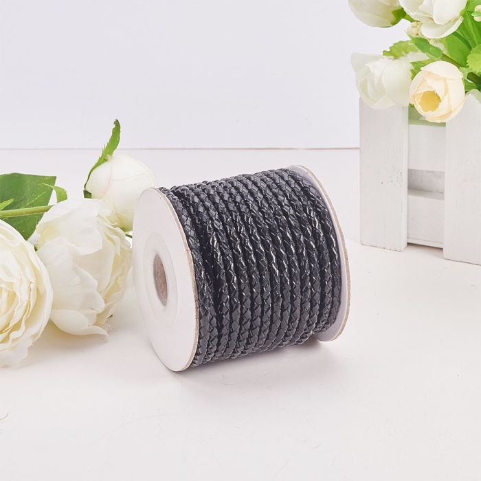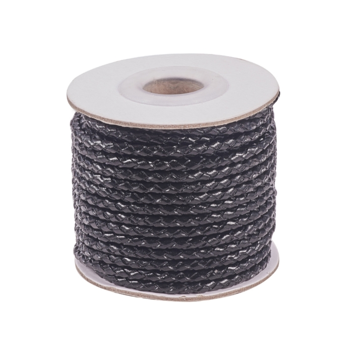 Шнур Натуральная Кожа, Плетеный, Круглый, Черный, 3мм, (УТ100027197)