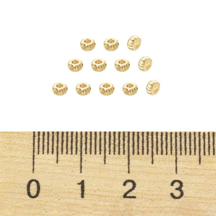 Бусины Латунные Рондель, Стойкое Покрытие, Позолота 18К, 3х1.5мм, Отверстие 1.2мм, (УТ100027324)