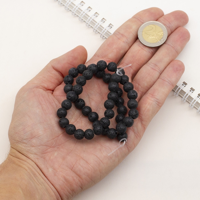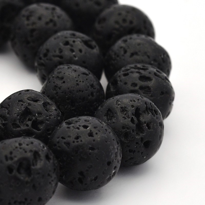 Бусины Натуральная Лава, на нитях, Круглые, Черный, 8мм, Отверстие 2.5мм, около 48шт/35см/нить, (УТ100027374)