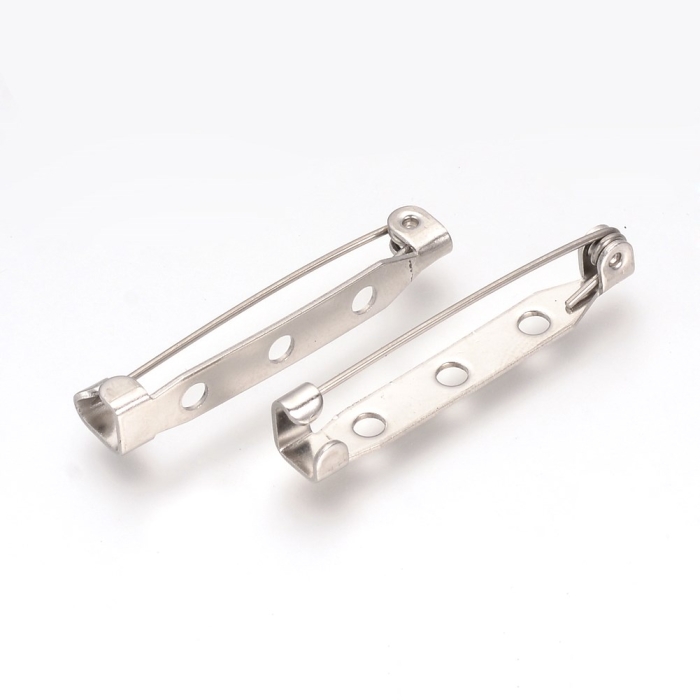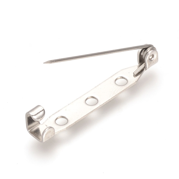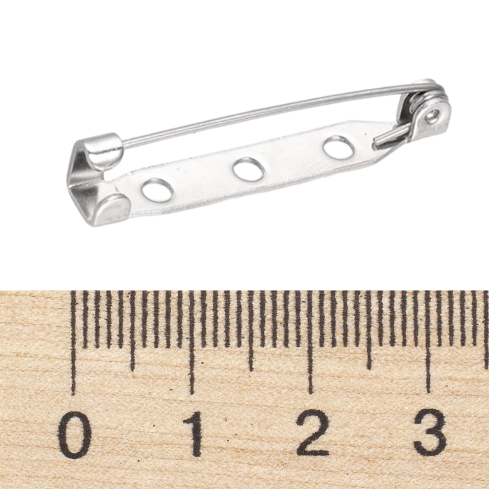 Основа под Брошь, Нержавеющая Сталь, Булавка с 3-мя Отверстиями, 32x5x6мм, Отверстие 2мм, Пин 0.8мм, (УТ100027990)