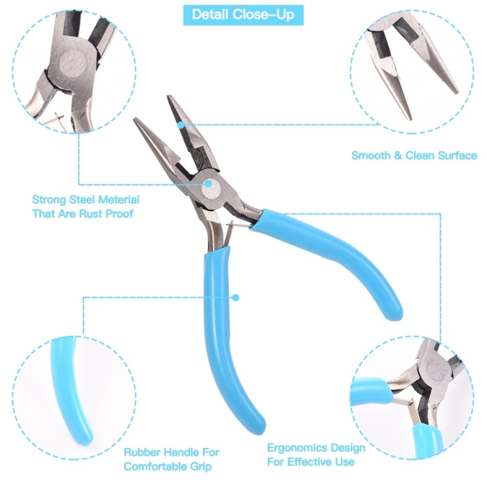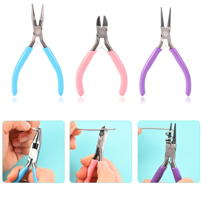 Набор Инструментов для Бижутерии и Украшений, Полированная Сталь, Плоскогубцы, Бокорезы, Тонкогубцы, Микс, 18.3x16.5x1.5см, 3шт/упак, (УТ100028180)
