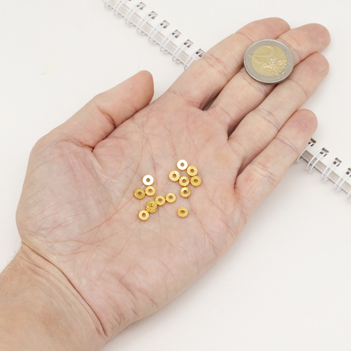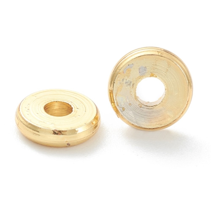 Бусины Латунь, Стойкое Покрытие, Круглые, Плоские, Покрытие Золото 18К, Размер: 6х1.5мм, Отверстие 1.8мм, (УТ100028261)