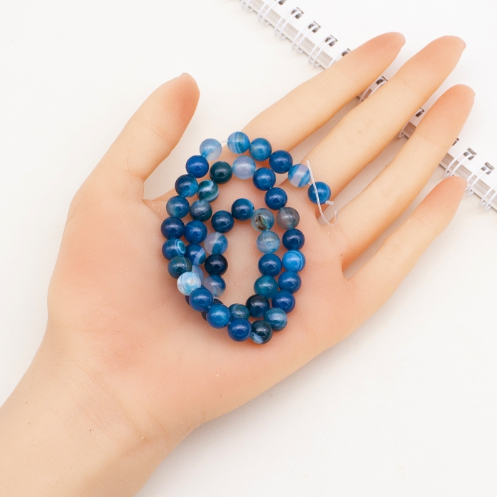 Бусины Натуральный Полосатый Агат Круглые, Небесно-Голубой, 8мм, Отверстие 1мм, около 45шт/37см/нить, (УТ100029143)
