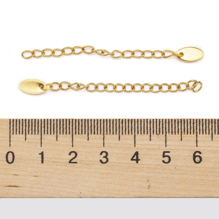 Цепочка Удлинительная с Подвеской Овал из Нержавеющей Стали, Золото, Длина Цепочки 58-68мм, Звено 4х3х0.5, Подвеска 9х5х1мм, 5шт/упаковка, (УТ100029386)